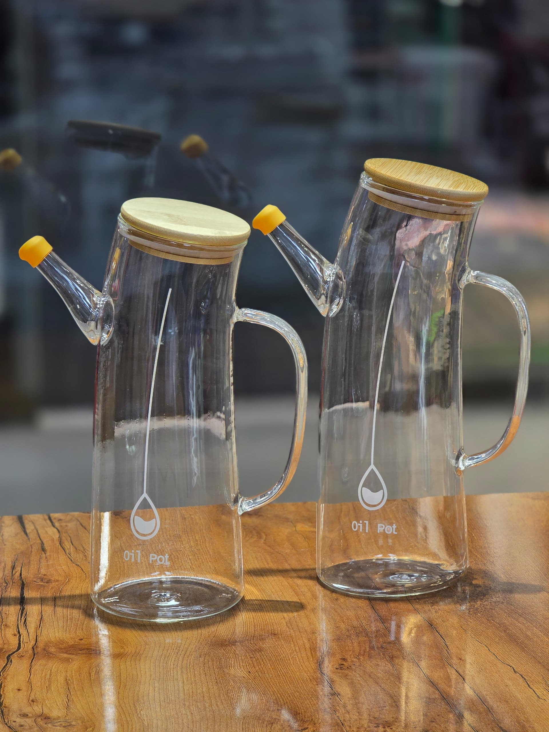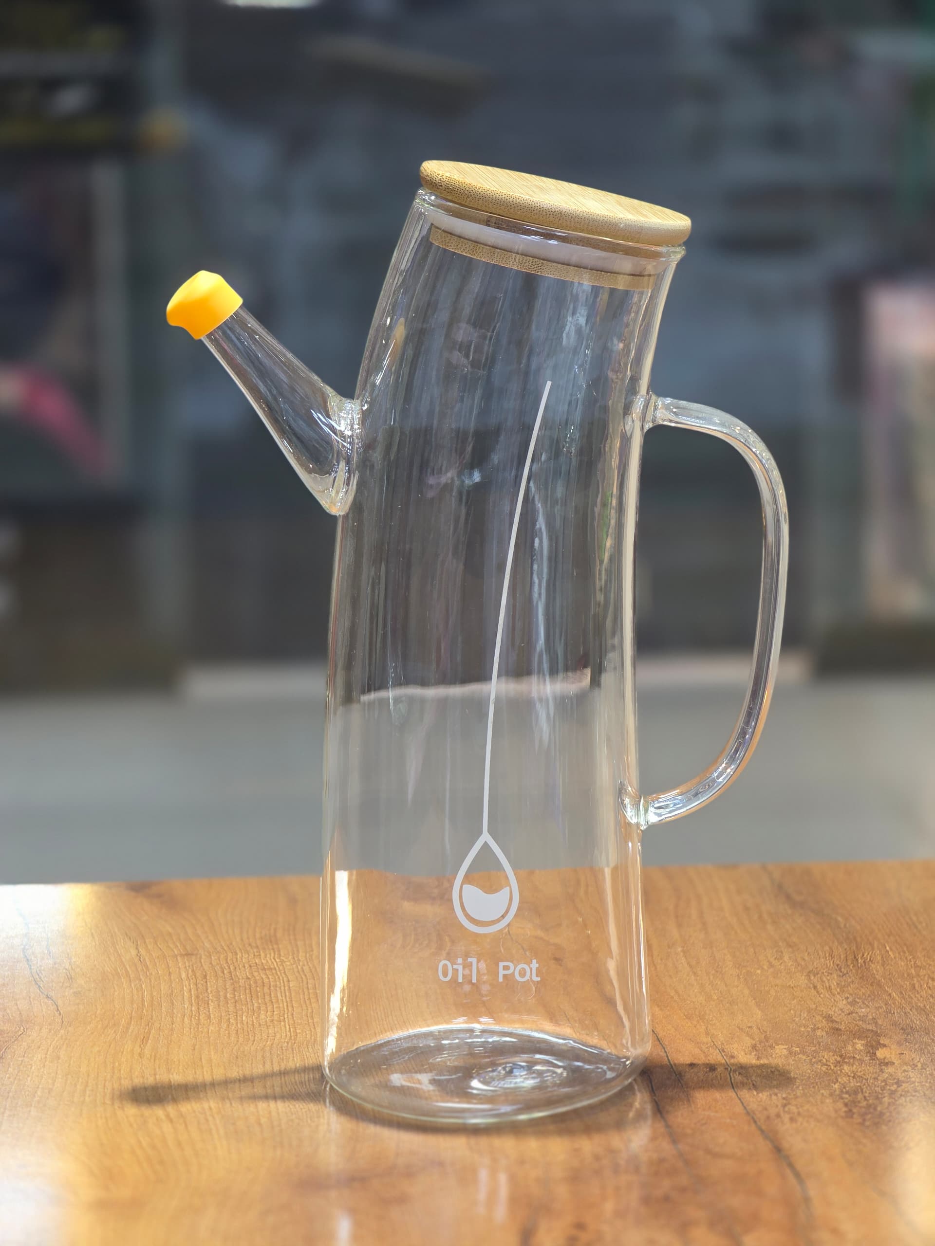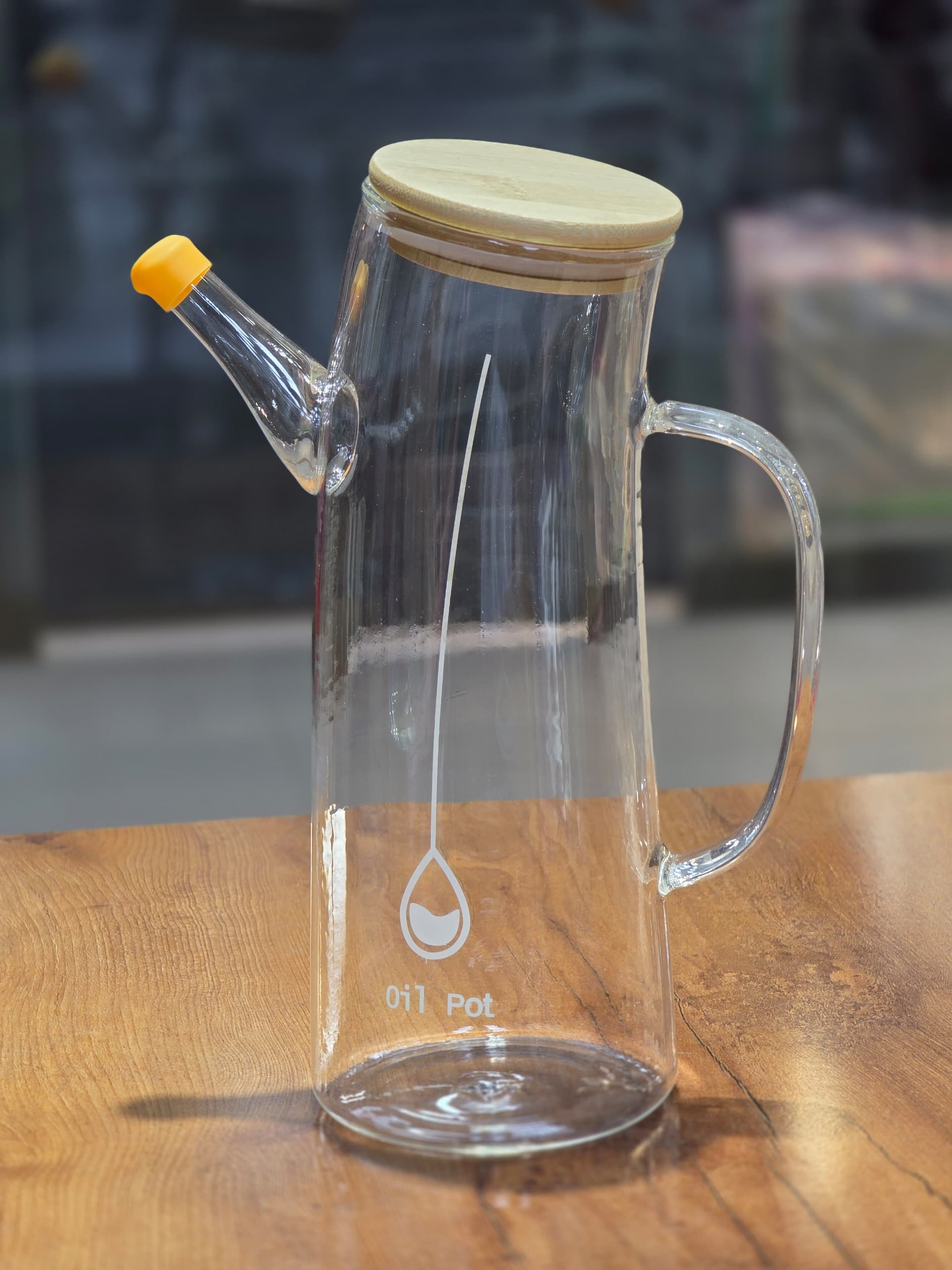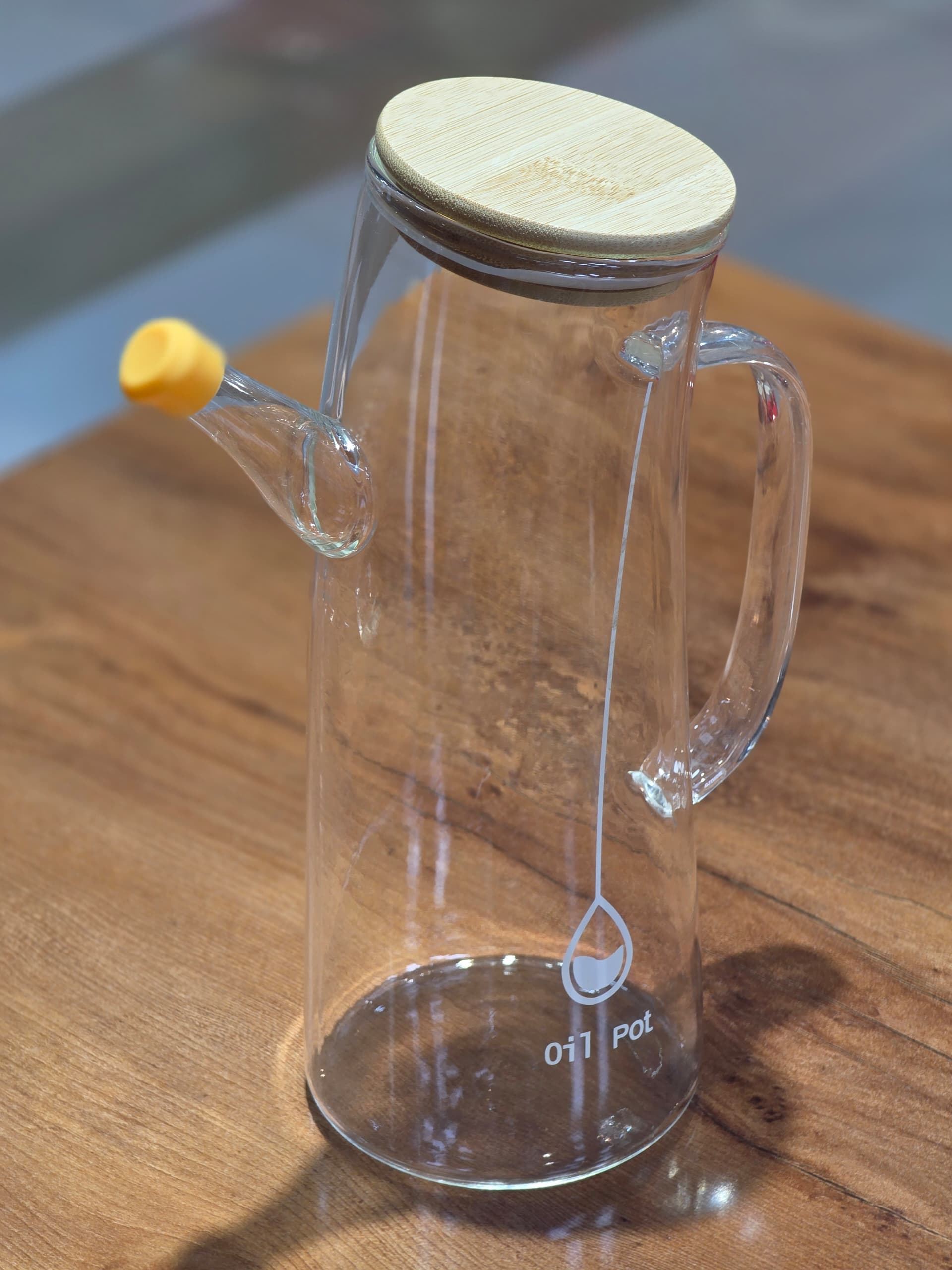 ظرف روغن پیرکس طرح کج درب بامبو وارداتی