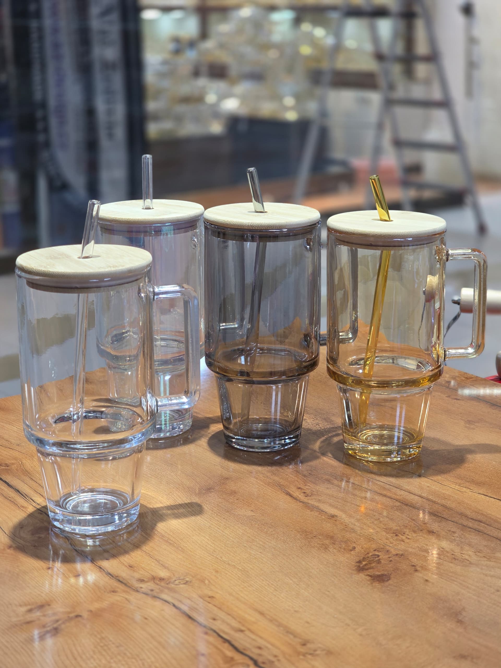 ماگ استنلی شیشه ای درب بامبو وارداتی
